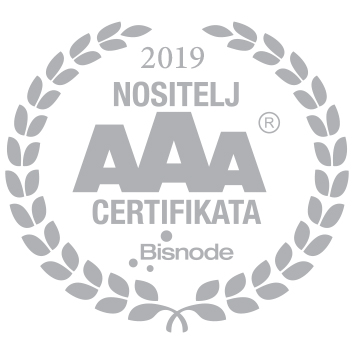 13. studenog 2019. – Zahvaljujući odličnim poslovnim rezultatima dodijeljen nam je međunarodno priznat AAA Certifikat bonitetne izvrsnosti, što nas svrstava u skupinu od 5 % najboljih poduzeća u Hrvatskoj te potvrđuje da smo siguran, ugledan i poželjan partner.