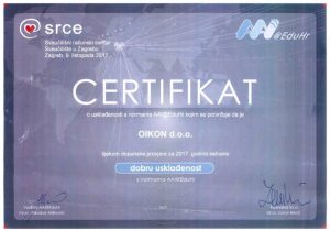 Prilikom redovite godišnje provjere usklađenosti svih matičnih ustanova s normama AAI@EduHr, Oikon d.o.o. – Institut za primijenjenu ekologiju je za 2017. godinu ostvario dobru usklađenost sa zadanim normama.