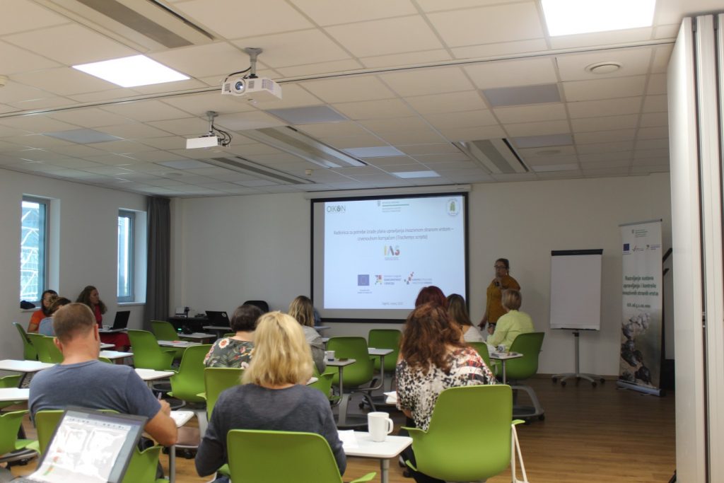 Na ukupno 18 radionica održanih širom Hrvatske, od Osijeka do Dubrovnika, relevantni dionici dobili su uvid te su podijelili svoje mišljenje i iskustvo s malim indijskim mungosom (Herpestes javenicus auropunctatus), signalnim rakom (Pacifastacus leniusculus) i crvenouhom kornjačom (Trachemys scripta), čime su ujedno dali svoj doprinos u izradi planova upravljanja tim invazivnim stranim vrstama.